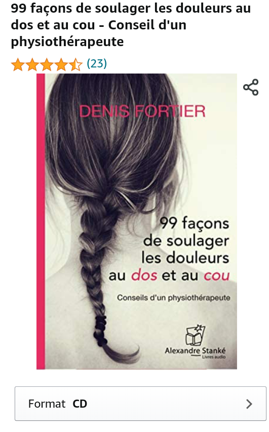 - 99 façons de soulager les douleurs au dos et au cou : Conseils d’un physiothérapeute. En fin d’article accédez gratuitement à votre livre audio.